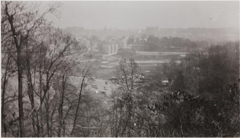 [Inwood Hill Park, looking north up hill from upper road at south end of M.(?) Donald House ]