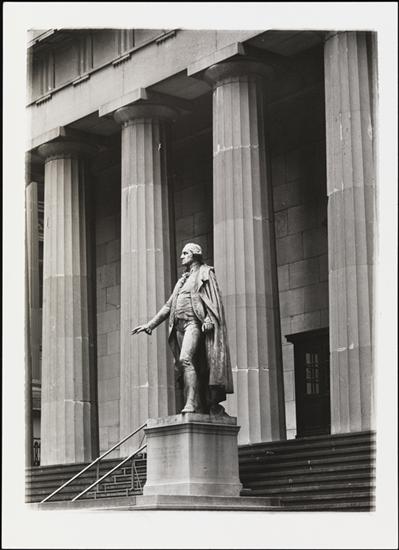 [Sculpture of George Washington outside of the Federal Hall Memorial.]