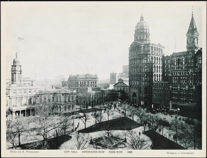 Municipal Building, Newspaper Row and City Hall Park, New York.