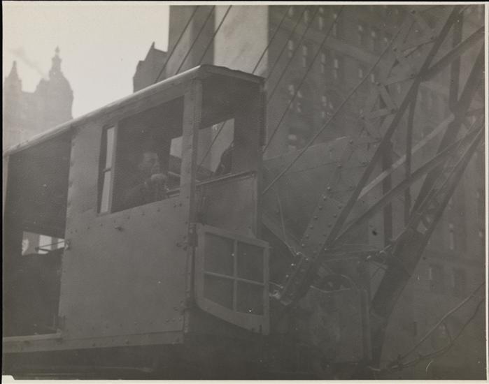[Crane dismantling West Side Elevated Highway near Pier 62.]