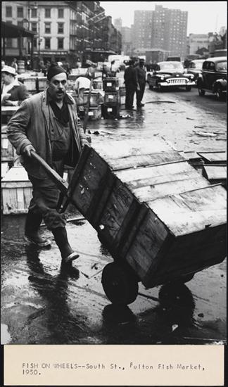 Fishdealers' Horseplay. [Fish sellers outside of the Fulton Fish Market.]