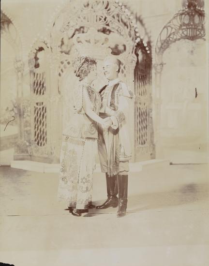 "Burlesque of 'The Merry Widow & The Devil'" on neg. | ".552m" and "W/44" in pencil on verso. | Players identified in pencil note on verso.