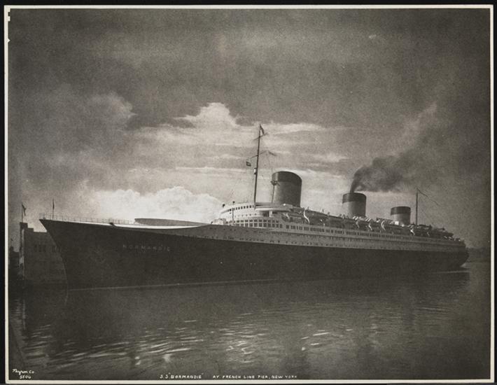 [S.S. "Normandie", at the French Line Pier, New York.]