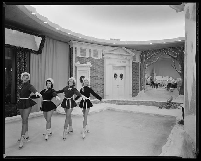 47th Street. Manhattan Savings Bank, Christmas show, ice skaters out.