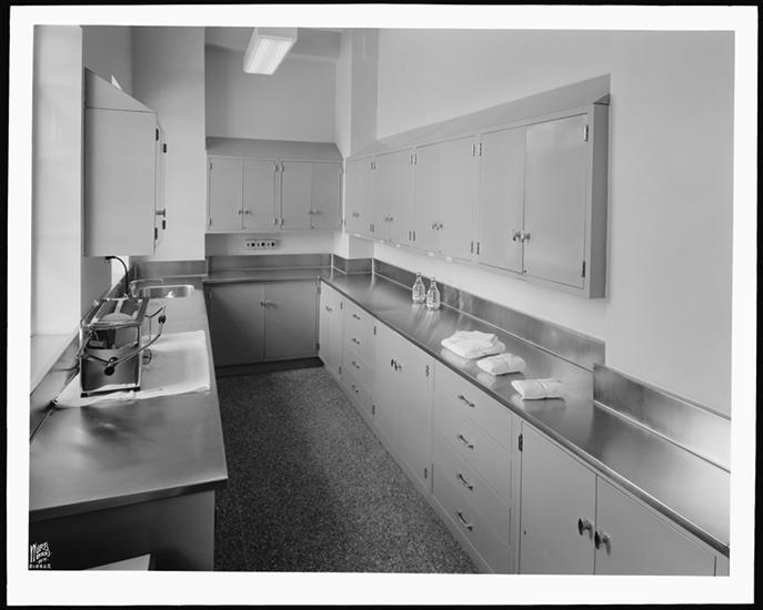 Shore Road Hospital, view of new operating room with wall cabinet.