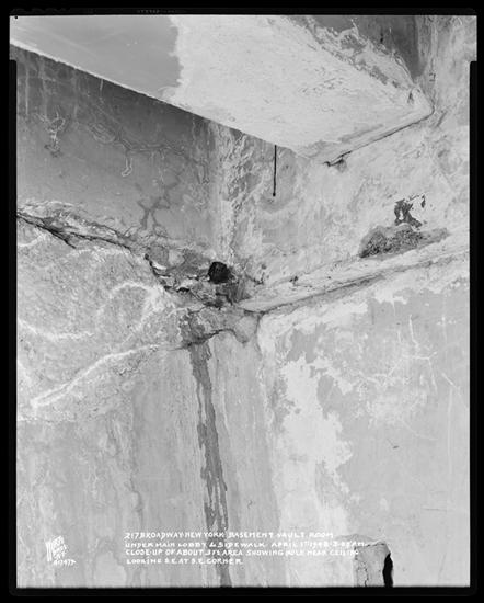 217 Broadway between Fulton and Vesey. Basement vault room looking south at S.E. corner, including section of about six feet square.