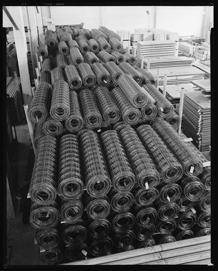 Northern Boulevard. Truscon Steel Company warehouse and office building, stock of doors and men working at bench.