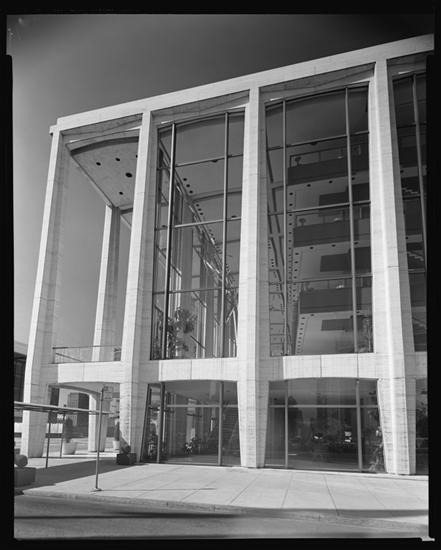 Philharmonic Hall, Lincoln Center, front elevation from portico of New York State Theater.