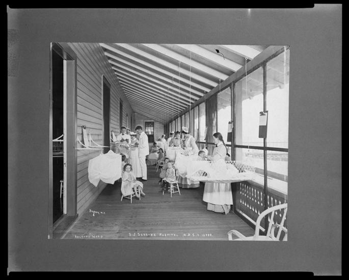 [Copy photo of] S.J. Seaside Hospital, nurse and two babies, malnutrition,12096 photo by Byron, New York.