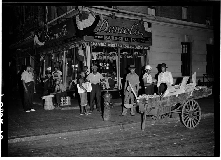 Street Scene in Harlem in front of Daniel's Bar and Grill.