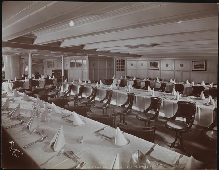"H.A. Line, S.S. President Lincoln, 2nd cl. Dining Room" on neg.