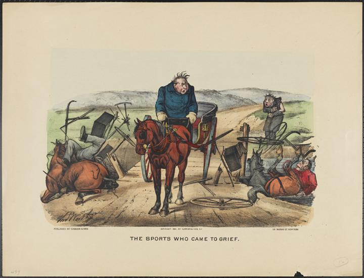 [Older couple pushed to the side of the road because of an impromptu horse race.]