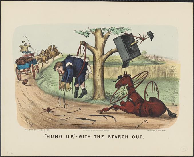 [Older couple pushed to the side of the road because of an impromptu horse race.]