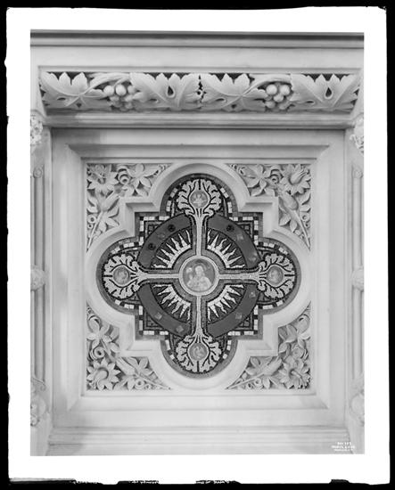 Broadway and Wall Street. Old Trinity Church. Astor Memorial, detail of upper part [showing] Virgin and child.