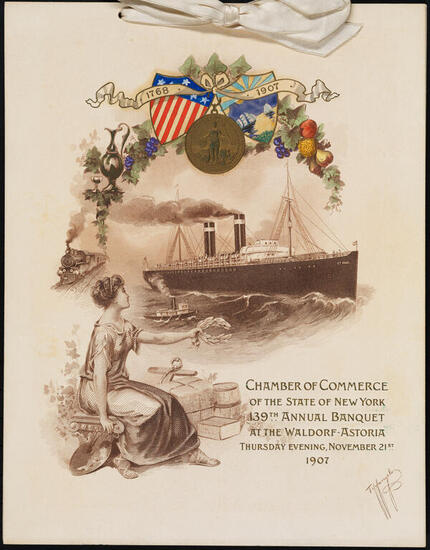 [Menu for the 142nd Annual Banquet of the Chamber of Commerce of the State of New York.]