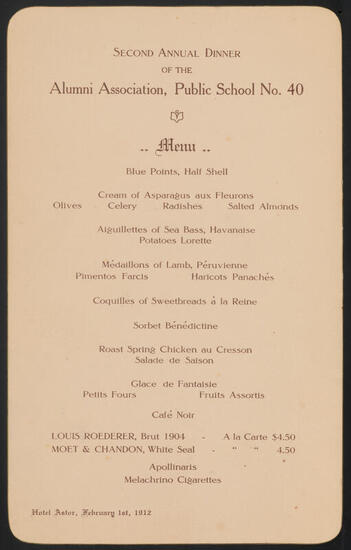 Old Public School No. 40 Second Annual Re-union Dinner of the Alumni Association