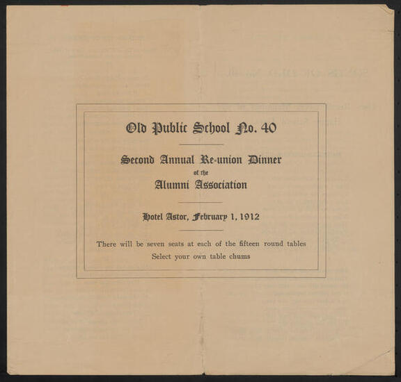 Second Annual Dinner of the Alumni Association, Public School No. 40