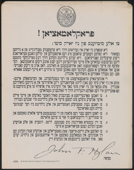 "Boost New York City". Dinner tendered to Honorable John F. Hylan, Mayor of New York City