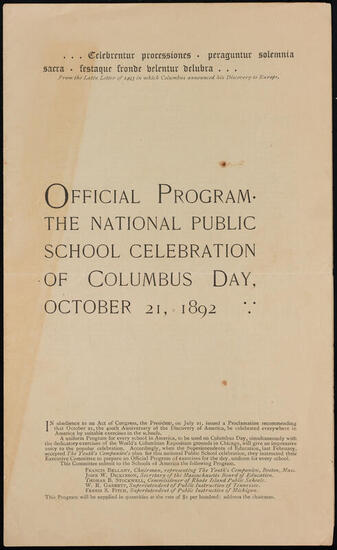 New York Columbian Celebration Banquet to commemorate the Four Hundredth Anniversary of the Discovery of America