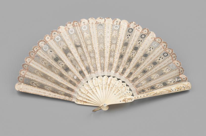 Folding fan of spangled ecru silk gauze
