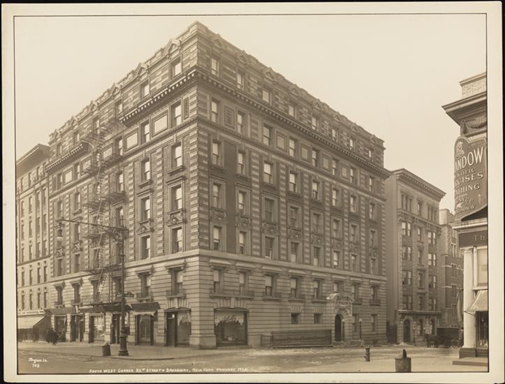 West 82nd Street at the S.W. corner of Broadway. General exterior, Saxony Apartments.