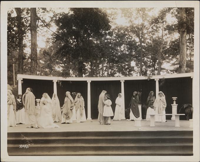 Students performing on an outdoor stage at the Academy of Mount St. Vincent, Riverdale.