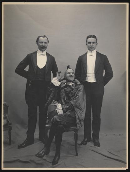 Portrait of Mr. J.H. Hyde's secretary (male) with two other unidentified men at the James Hazen Hyde Ball, January 31, 1905.