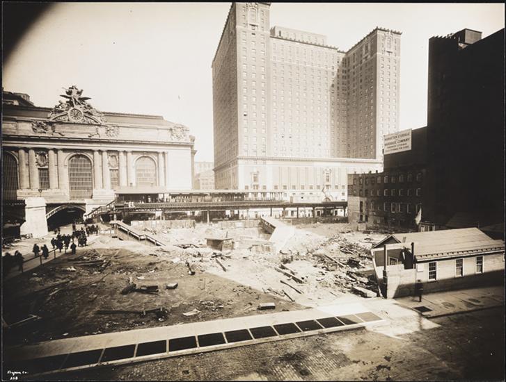 Hotels Murray Hill, Belmont, Manhattan, Biltmore and Commodore, Copy, H. Bierdermann's drawing of Pershing Sqr. Hotels, Subways and Grand Central.