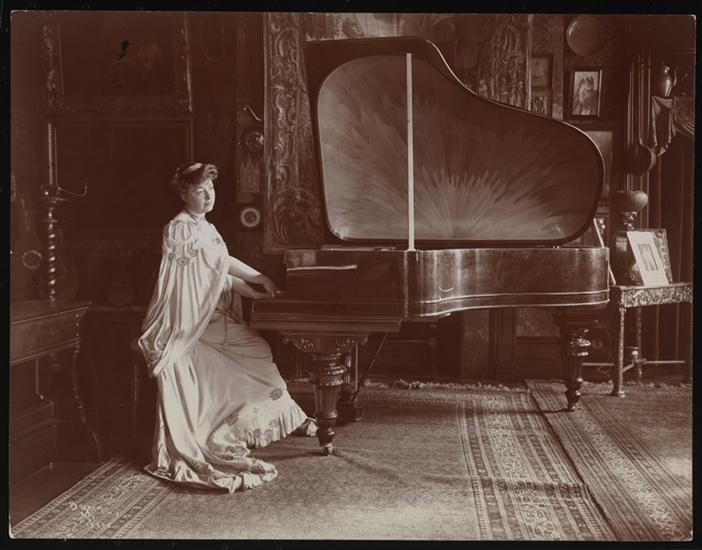 Portrait, Mrs. I.M. Clark with Her Special Pianos at Apartment.