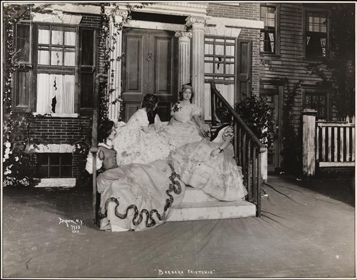 A scene from the romantic drama by Cylde Fitch, "Barbara Frietchie," produced by Charles Frohman at the Criterion Theatre, New York, in 1899, featuring Julia Marlowe as Barbara Frietchie.
