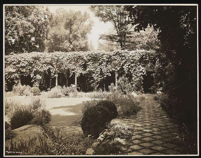 A vine-covered pergola in the garden on the J.H.R. Cromwell estate (formerly George Gould's) at Manursing Island, Rye, N.Y.