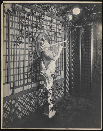 Interior at Sherry's with a statue and trellis-work at the James Hazen Hyde Ball, January 31, 1905.