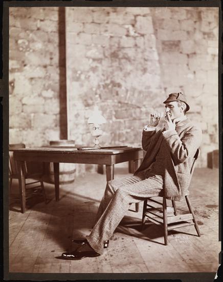 William Gillette as Sherlock Holmes and Clifford Bruce as Dr. Watson in te Charles Frohman production of "Sherlock Holmes" presented at the Empire Theatre in 1899.