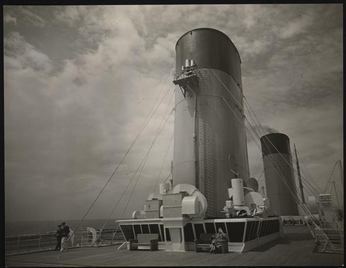 French Line, S.S. "Ile de France", First Class, Exterior, Promenade Deck with Models.