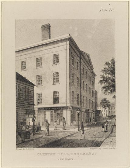 A. St. George's Church, Beekman St.; B. Clinton Hall, Beekman St.