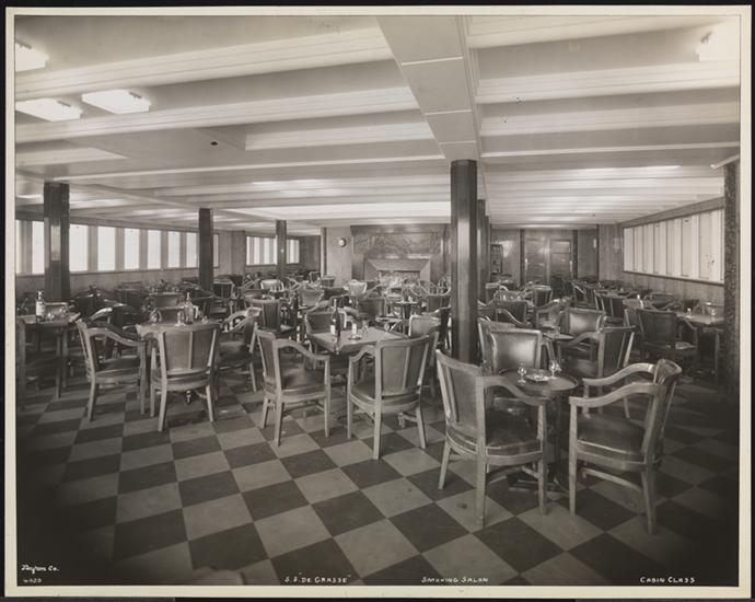 French Line, S.S. "De Grasse" Interior, Third Class, Smoking Room.