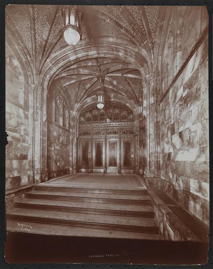 Entrance to the Carnegie Trust Co. at 115 Broadway; marble walls and vaults visible.