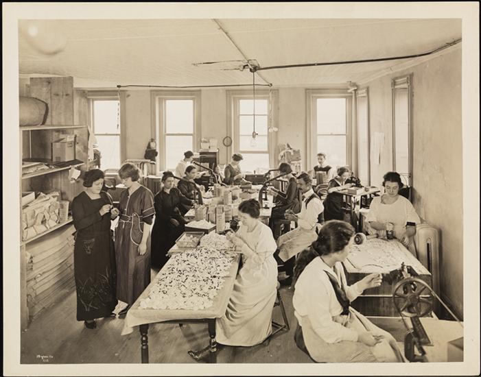 Workers in the face powder department of the Crystal Chemical Co. at 134th Street & Willis Avenue.