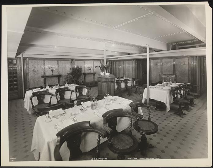 French Line, S.S. "Lafayette" (Later Named S.S. "Mexique") First Class, Dining Saloon.