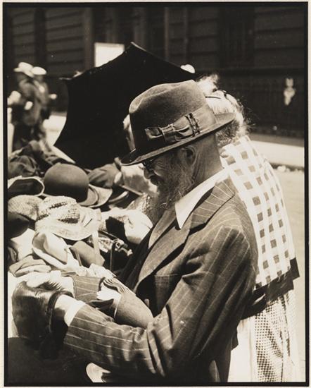[Woman in a head scarf at a street vending stall, a sign reads "7 cents"]