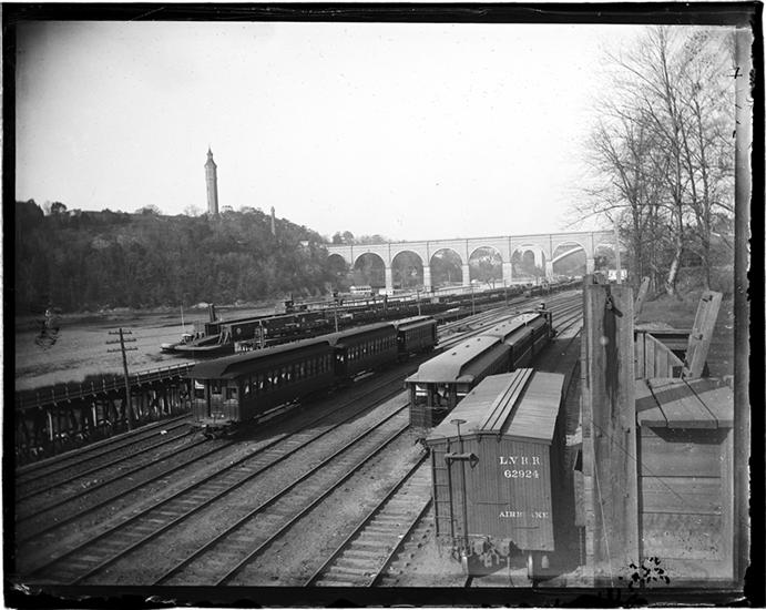 Washington Bridge under construction, taken June 10, 1887, from High Bridge