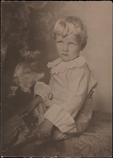 [Unidentified boy in sailor suit, head in hand]