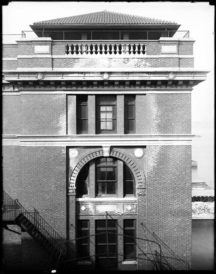 [Cornell University Medical College.] 1st Avenue at 28th Street. Facade and entrance.