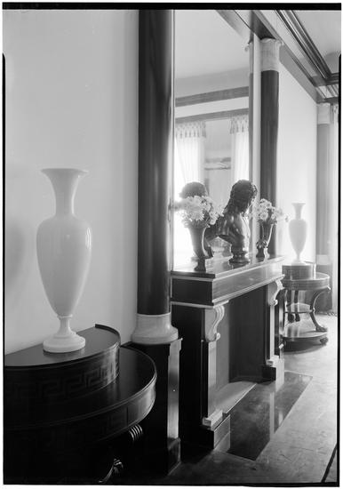 Robert A. Lovett [residence]. Dining room detail of fireplace, sharp.