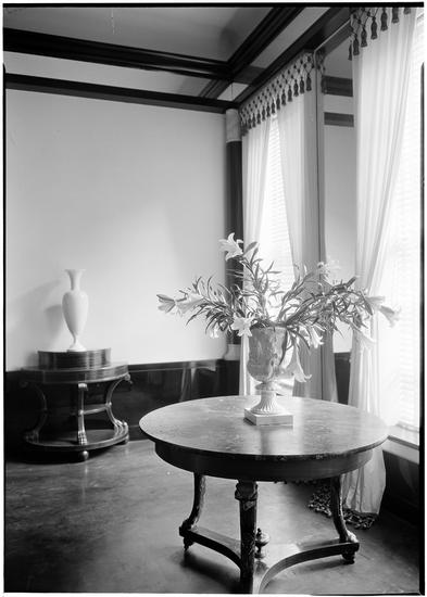 Irving Berlin [residence]. Living room detail of lamp and china desk.