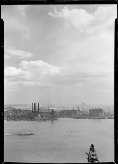 New York City views. [Manhattan] skyline and [East] river, from Warner Quinlan's dock, Long Island City, [Queens].