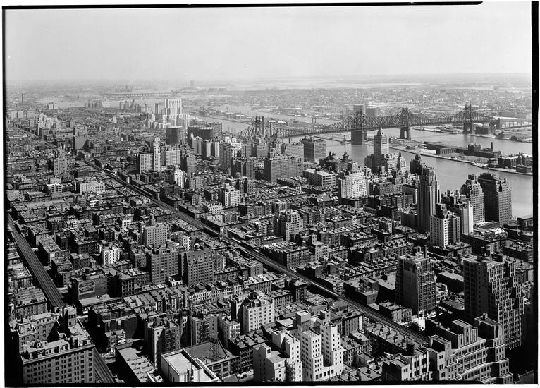 New York City views. Queens Borough Bridge, from the Panhellanic Building.