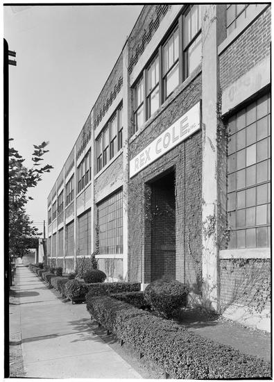 Rex Cole [Warehouse], 2511 Hunterspoint Avenue, Long Island City. Sharp exterior view down sidewalk.