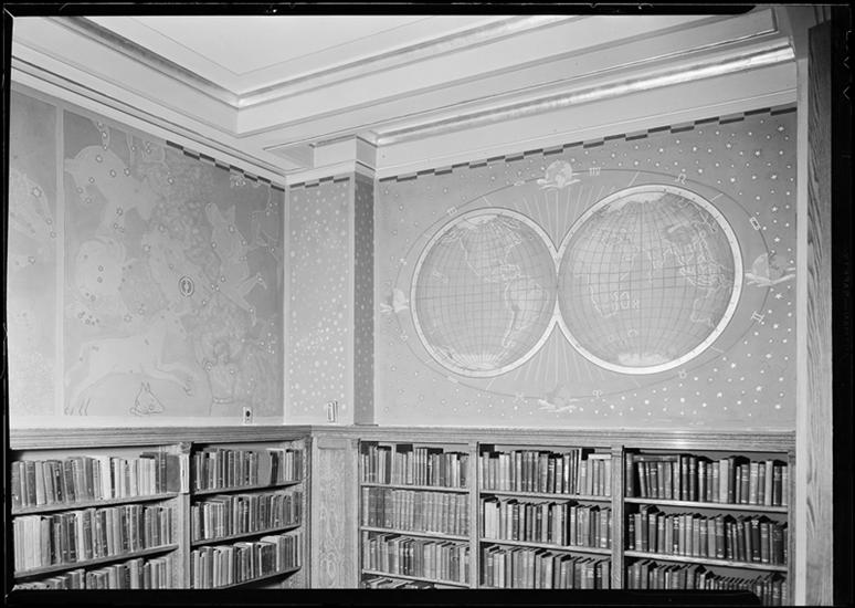 [Queensboro] Central Library, Jamaica, [Queens]. Murals in small library (children's).