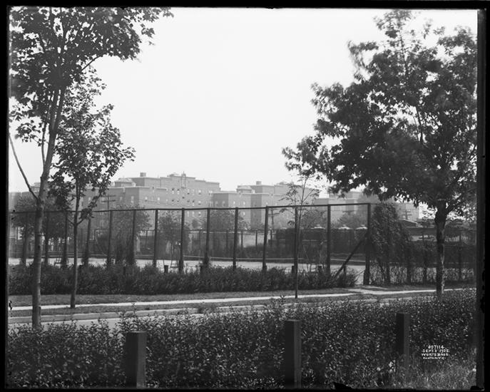 [Hayes Boulevard. Tennis courts and Chateau apartments.]